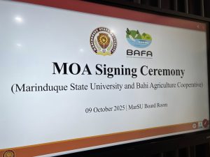 Boac, Marinduque, Philippines — A Memorandum of Agreement (MOA) Signing Ceremony between the Marinduque State University – College of Engineering (CEng) and the Bahi Agriculture Cooperative (BAC) was held on October 9, 2025, at the MarSU Board Room, Boac. The activity is part of the ongoing DA-ACEF-funded project of the MarSU College of Business and Accountancy titled “Scaling Up of Arrowroot Enterprise through Technology Transfer of Arrowroot Bagasse Products.”